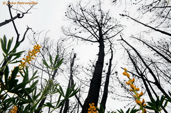 uma terra devastada pelo fogo. Entre elas, a Tremocilha (Lupinus luteus), com